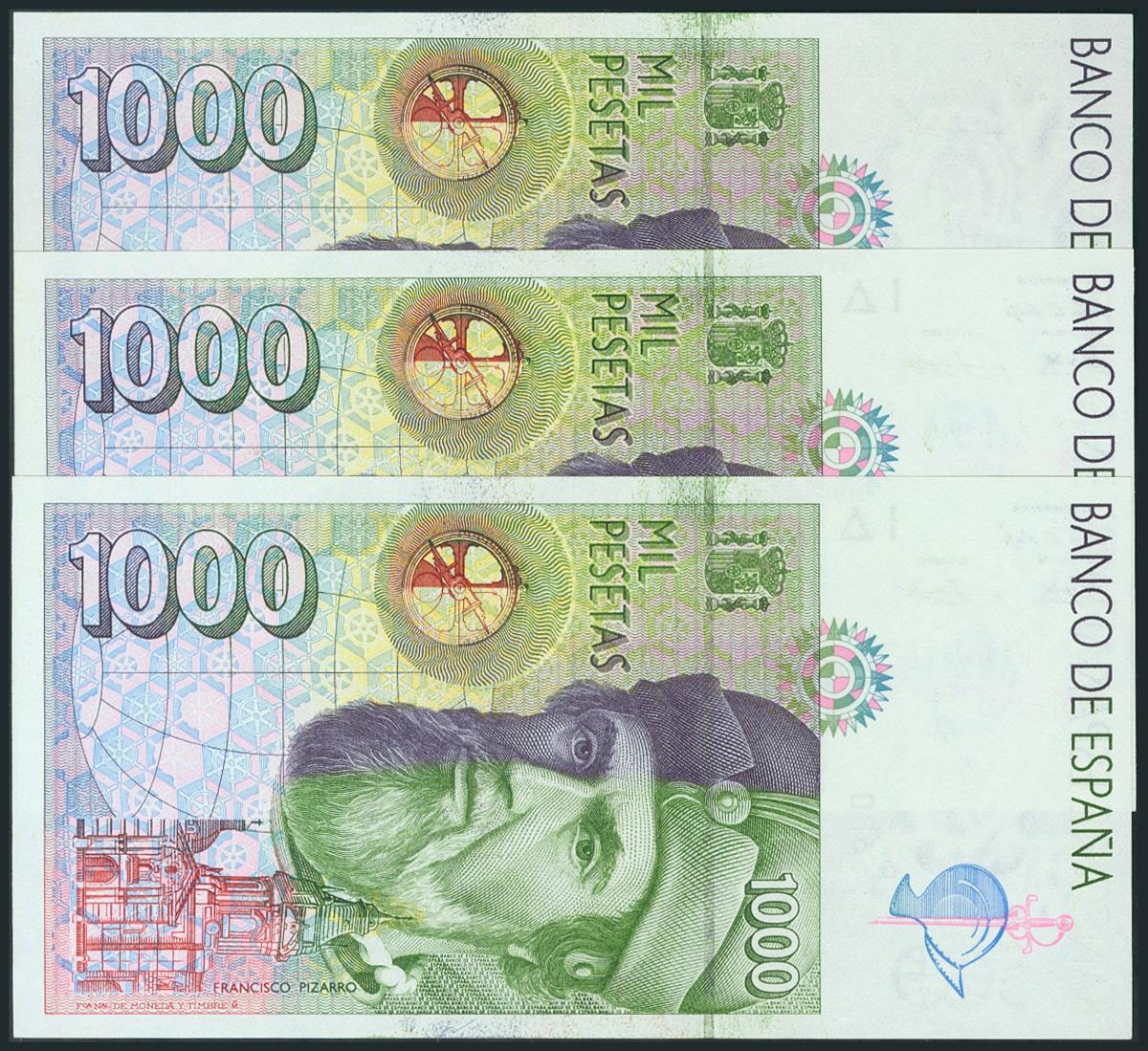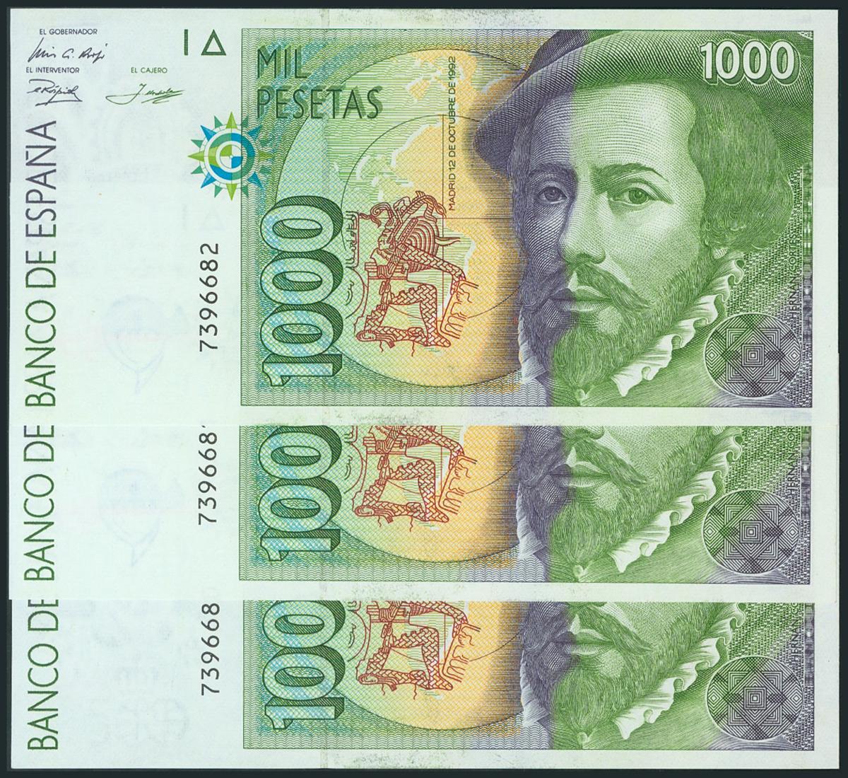 1000 Pesetas. 12 de Diciembre de 1992. Trío correlativo. Sin serie. (Edifil 2017: 483). SC.