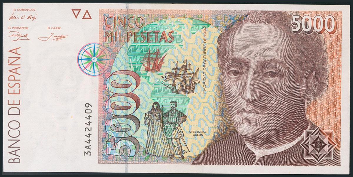 5000 Pesetas. 12 de Diciembre de 1992. Serie 3A. (Edifil 2017: 484a). SC.