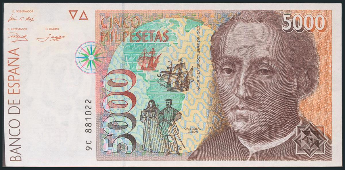 5000 Pesetas. 12 de Diciembre de 1992. Serie 9C. (Edifil 2017: 484b). EBC.