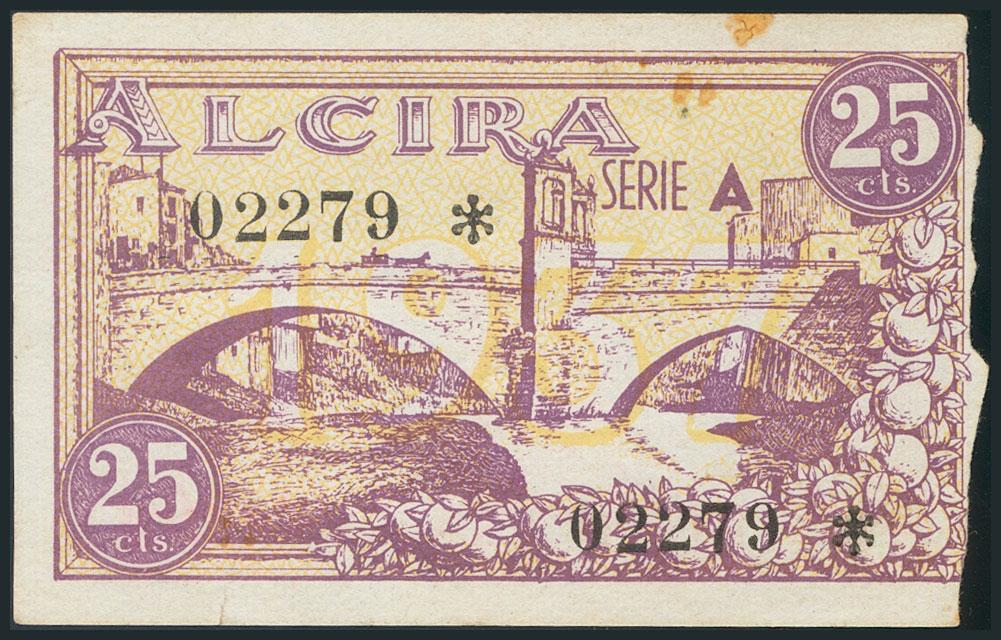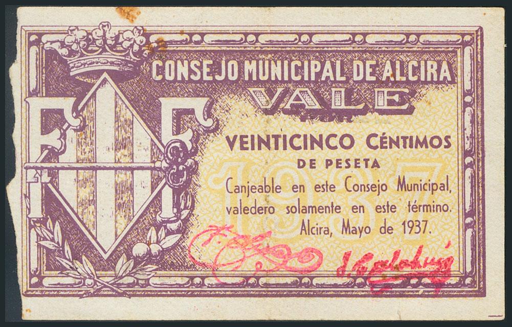 ALCIRA (VALENCIA). 25 Céntimos. Junio de 1937. (González: 324). RC.
