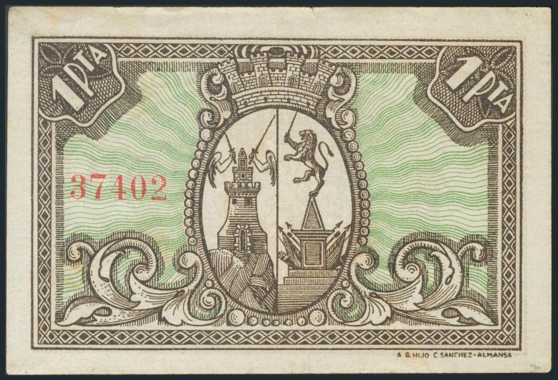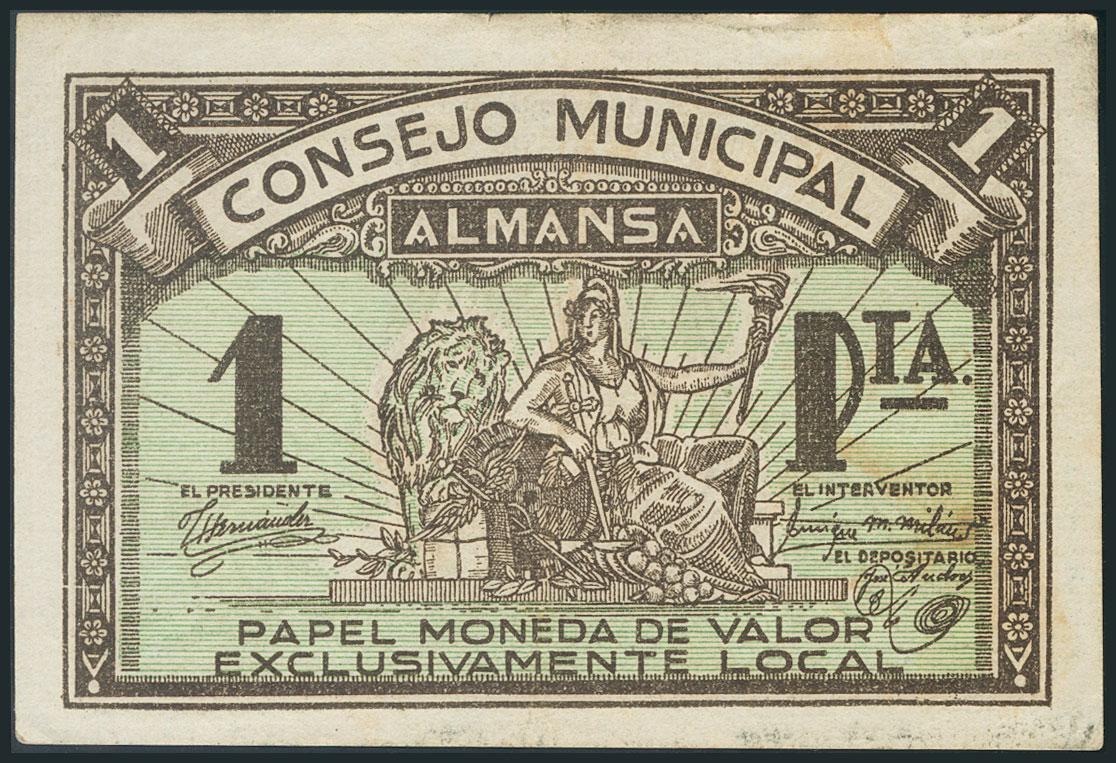 ALMANSA (ALBACETE). 1 Peseta. (1936ca). (González: 550). BC.