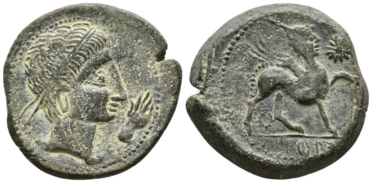 CASTULO. As. 180 a.C. Cazlona (Jaén) A/ Cabeza masculina diademada a derecha delante mano. R/ Esfinge avanzando a derecha, debajo KaSTiLO. Delante estrella. FAB-701. Ae. 14,52g. MBC+.