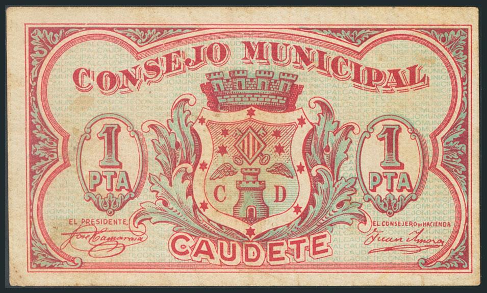CAUDETE (ALBACETE). 1 Peseta. (1936ca). (González: 1850). Inusual. BC+.