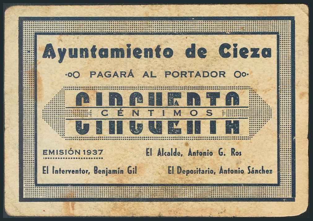 CIEZA (MURCIA). 50 Céntimos. 1937. (González: 1966). BC.
