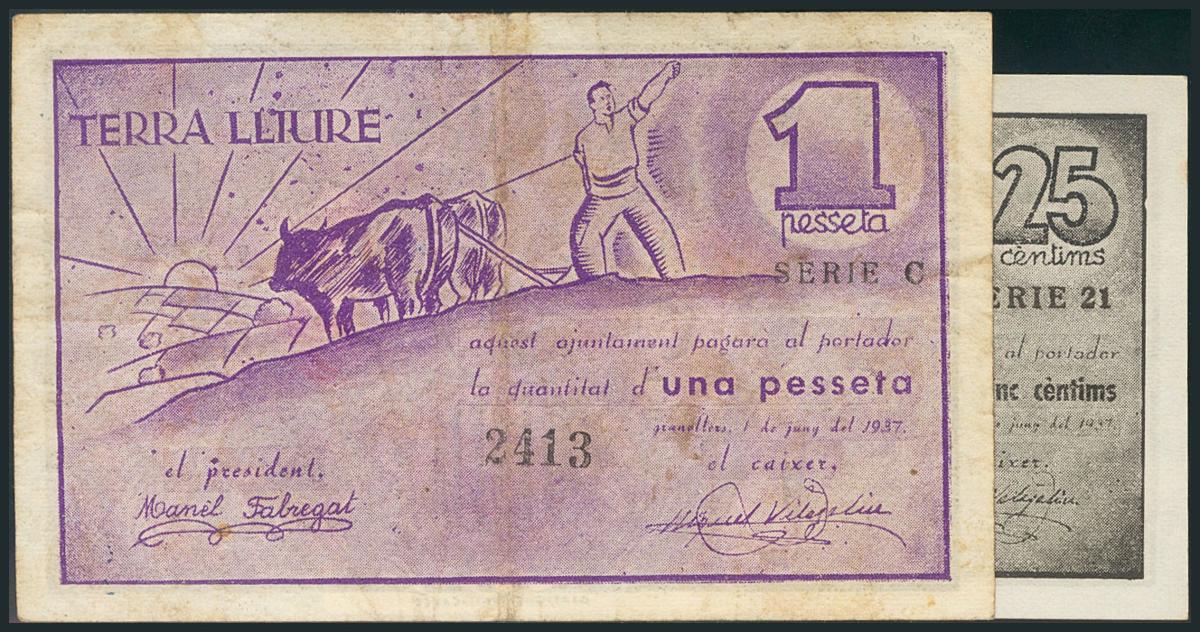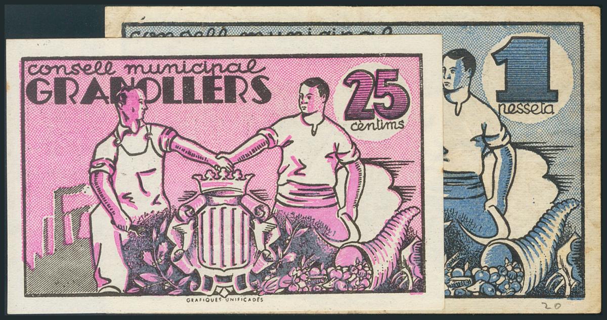 GRANOLLERS (BARCELONA). 25 Céntimos y 1 Peseta. 1 de Junio de 1937. MBC.