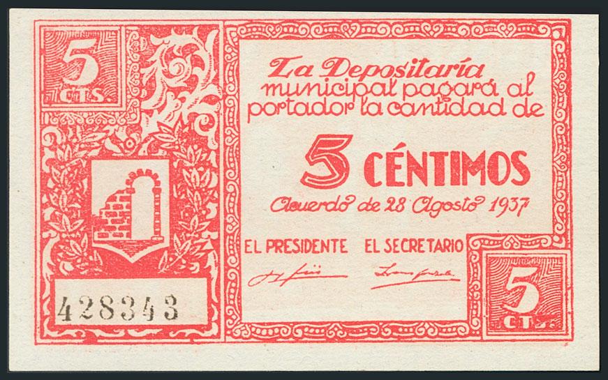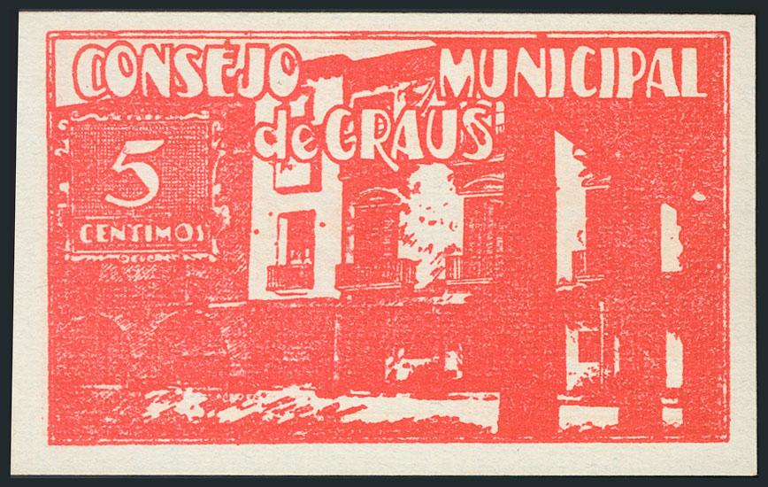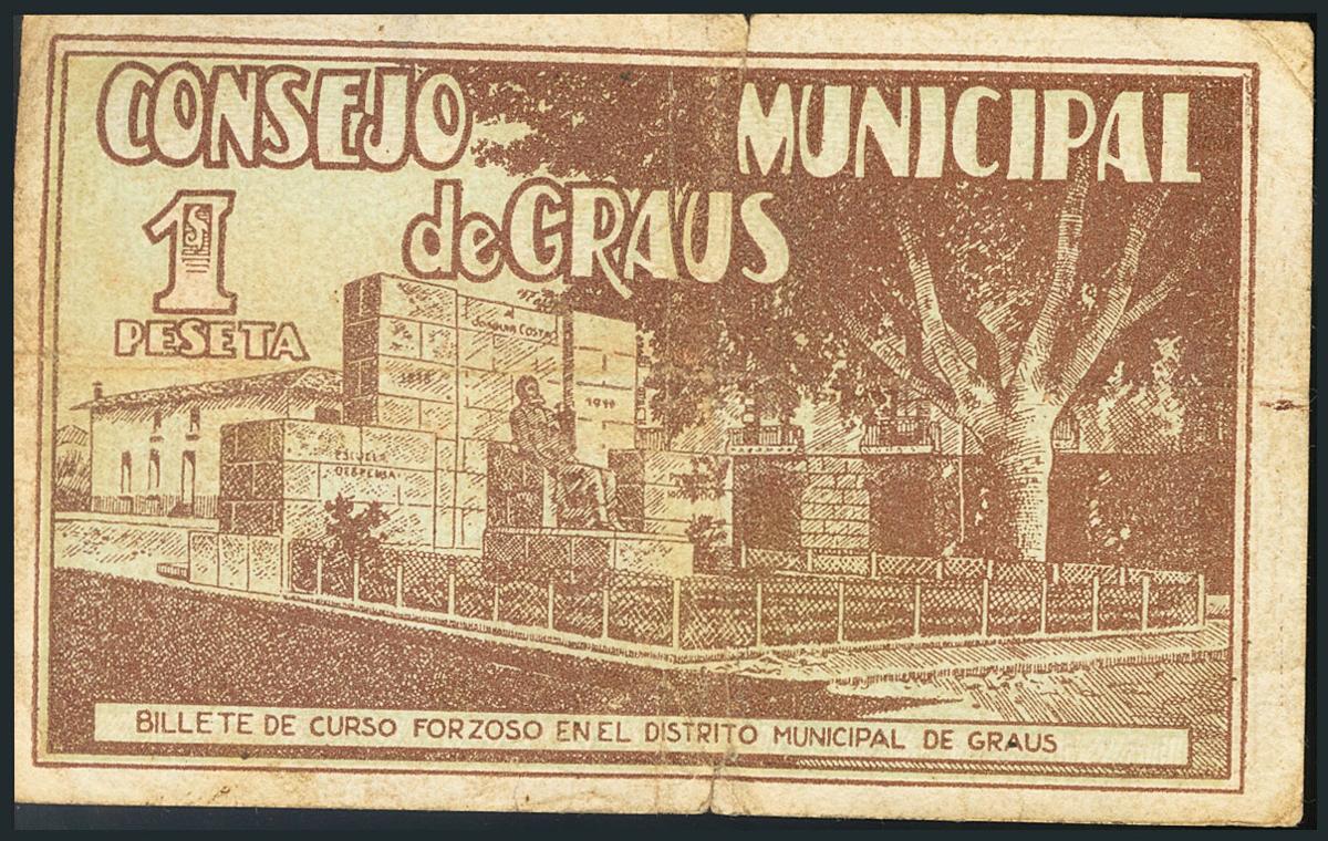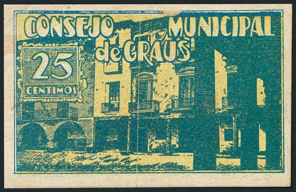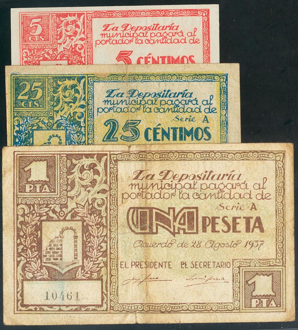 GRAUS (HUESCA). 5 Céntimos, 25 Céntimos y 1 Peseta. 28 de Agosto de 1937. (González: 2726, 2727, 2729). BC.