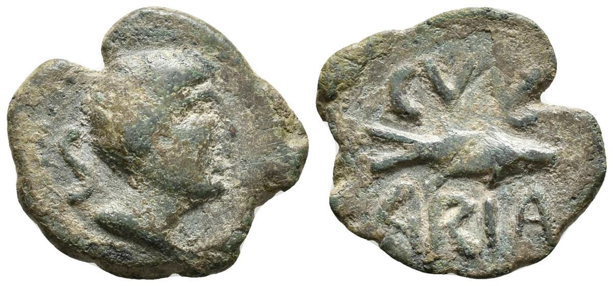 CVNBARIA. Semis. 50 a.C. Las Cabezas de San Juan (Sevilla). A/ Cabeza masculina a derecha, detrás S. R/ Atún a derecha entre CVNB/ARIA. FAB-878. Ae. 4,09g. MBC.