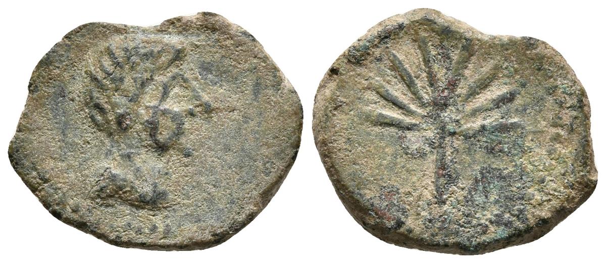 LAELIA. Cuadrante. 50-20 a.C. Olivares (Sevilla). A/ Cabeza masculina a derecha. R/ Palma. FAB-1654. Ae. 2,54g. MBC-.