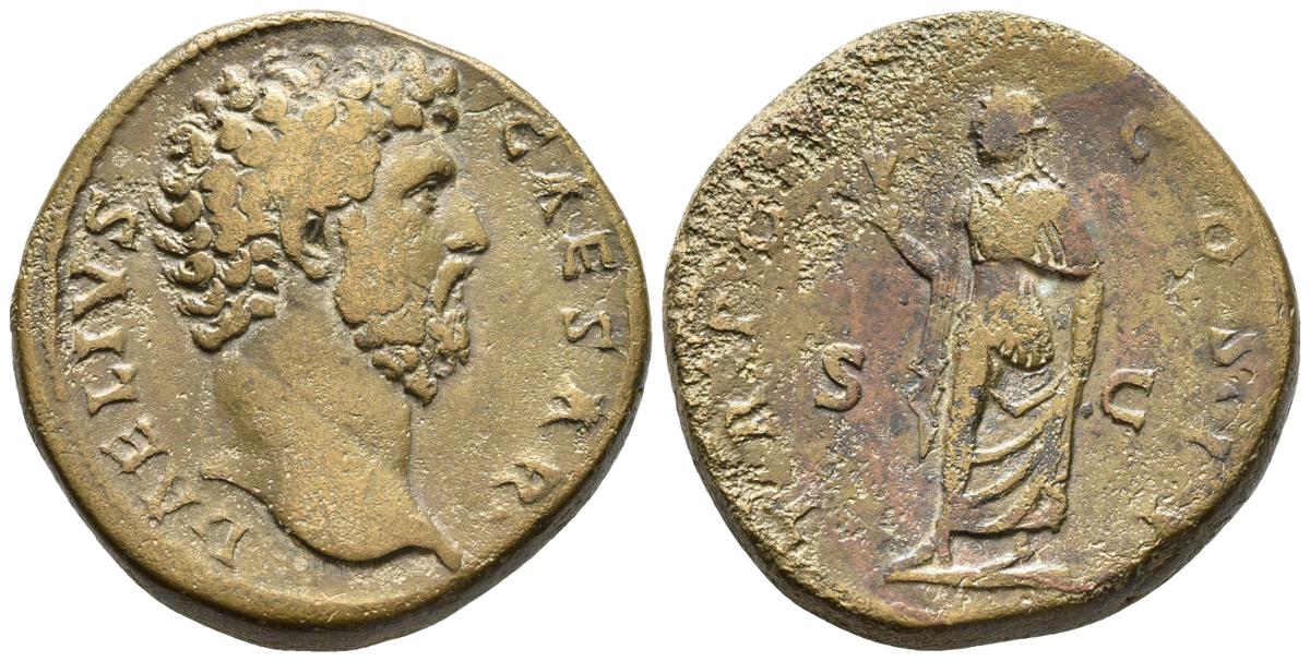 AELIO. Sestercio. 136-138 d.C. Roma. A/ Cabeza desnuda a derecha. AELIVS CAESAR. R/ Spes avanzando a izquierda con flor y sujetándose el vestido. TR POT COS II/S-C. RIC 1055 (Hadrian). Ae. 28,91g. MBC-.