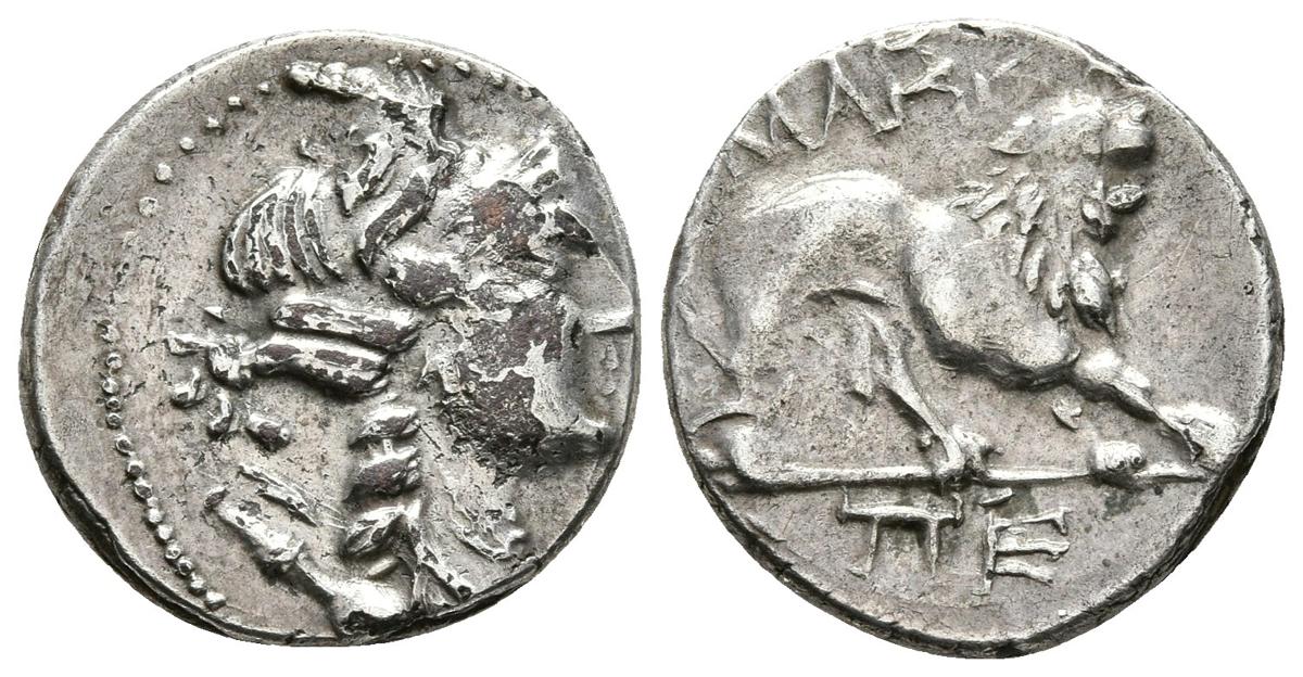 MASSALIA (Gaul). Dracma. 121-82 a.C. A/ Busto con diadema y drapeado de Artemis a derecha. R/ León a derecha. BN 13535, Dep. 55/52. Ar/Ae. 2,54g. Forrado de muy buen arte. MBC.