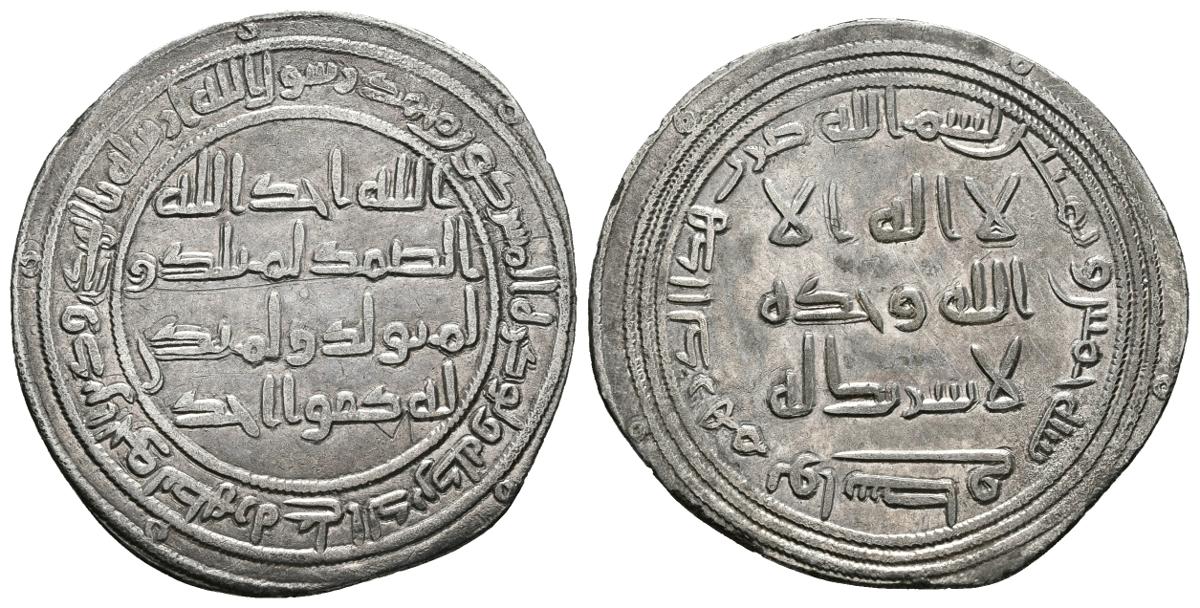 CALIFATO OMEYA DE DAMASCO. Abd Al-Malik I. Dirham. 85H. Wasit. Album 1261. Ar. 2,62g. Bonita pátina. Rayitas en anverso. EBC/MBC+.