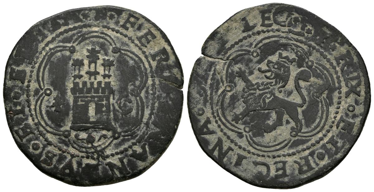 REYES CATOLICOS. 4 Maravedís. (1474-1504). Cuenca. Cáliz como inicio de leyenda en reverso. Cal-567. Ae. 7,27g. MBC.