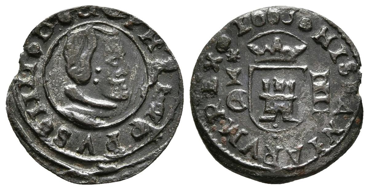 FELIPE IV. 4 Maravedís. 1663. Cuenca CA. Puntos en la puerta dentro del escudo y en la misma vertical fuera del escudo. Cal-1339; J.S. M-No cita. Ae. 1,08g. MBC+. Rara.