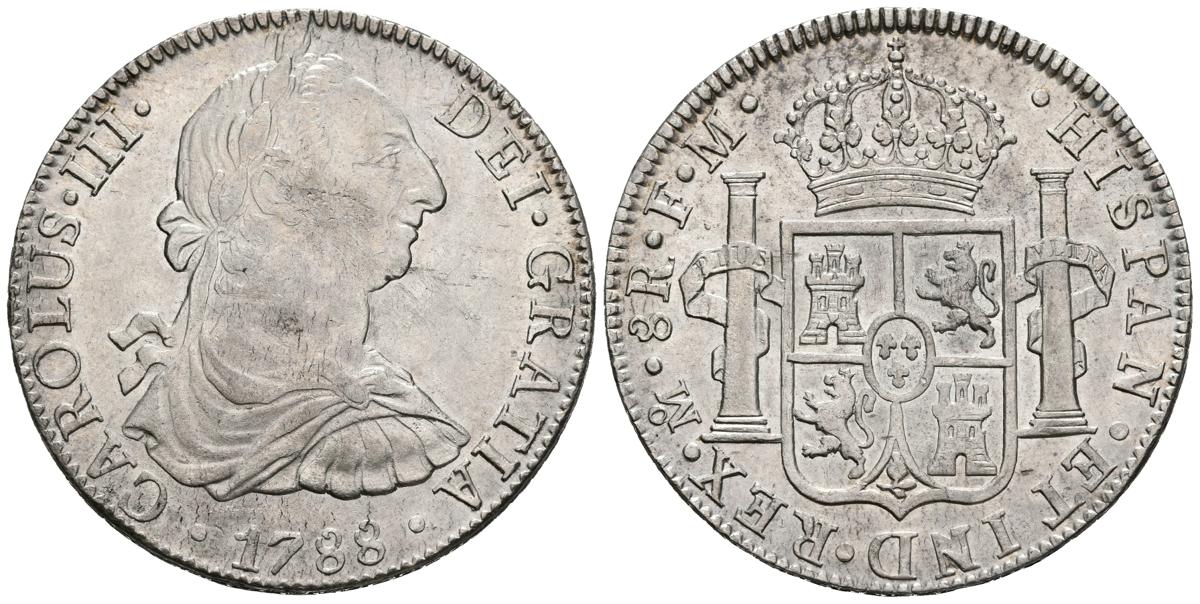 CARLOS III. 8 Reales. 1788. México FM. Cal-942. Ar. 26,91g. Buen ejemplar y mínima erosión en anverso. EBC.