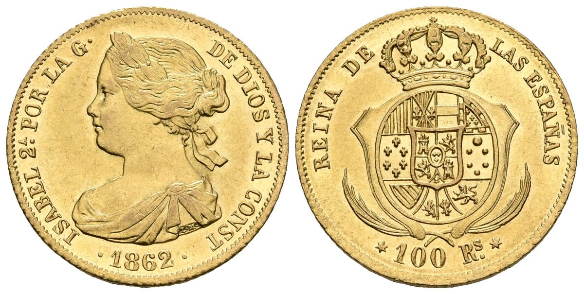 ISABEL II. 100 Reales. 1862. Madrid. Cal-27. Au. 8,34g. MBC+/EBC-.