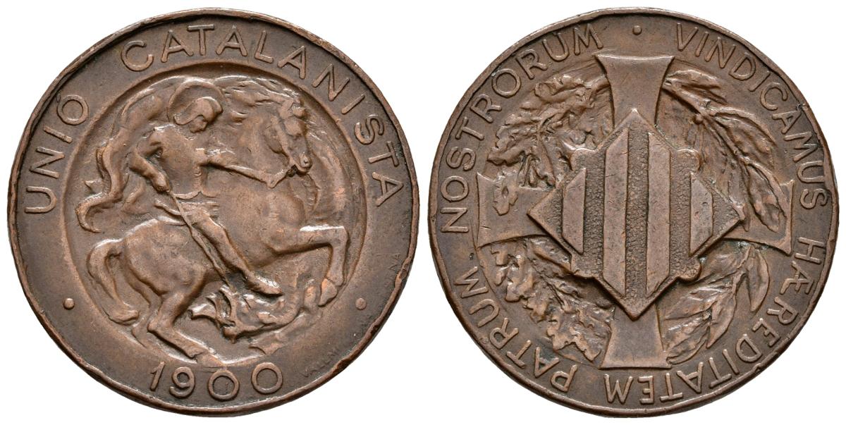 UNIO CATALANISTA. 10 Céntimos. 1900. Barcelona. Vallmitjana. Cal-91. Ae. 9,91g. Golpecitos en el canto. MBC+