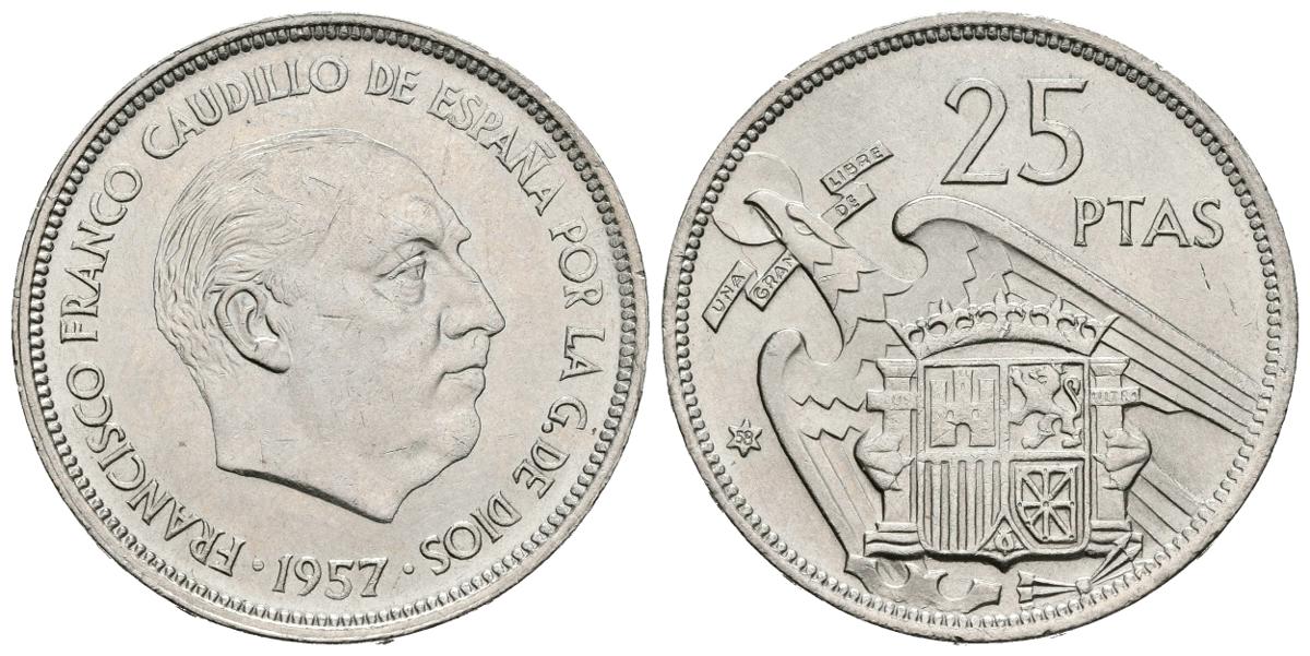 ESTADO ESPAÑOL. 25 Pesetas 1957 *58. Cal-30. 8,63g. EBC/SC-.