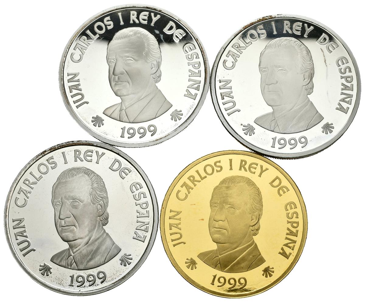 CONTEMPORANEO. Serie completa conmemorativa del Año Santo Jacobeo. 2000 (3), 10000 y 80000 Pesetas. 1999. Madrid. Ar. 249,75g y Au. 27,00g. PROOF. Todas las monedas sin certificado ni estuche oficiales.
