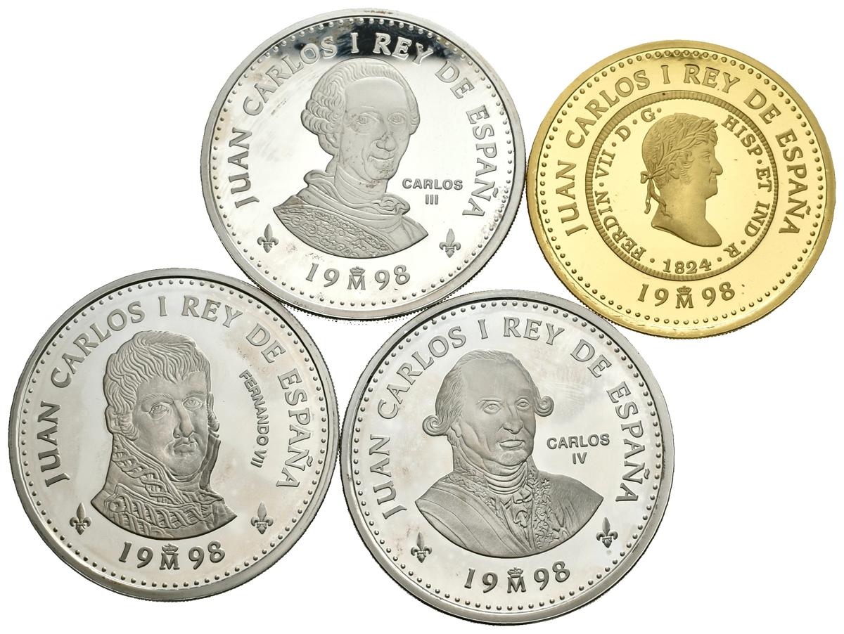 CONTEMPORANEO. Serie completa conmemorativa de la Casa de Borbón. 2000 (3), 10000 y 80000 Pesetas. 1998. Madrid. Ar. 249,75g y Au. 27,00g. PROOF. Todas las monedas sin certificado oficial y sin estar presentadas en estuche oficial.