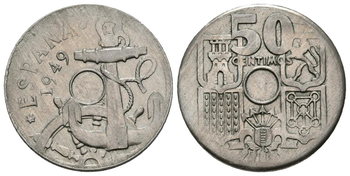 ESTADO ESPAÑOL. 50 Céntimos. 1949 *19-__. Sin perforación central y canto sin acuñar. 4,15g. MBC+.