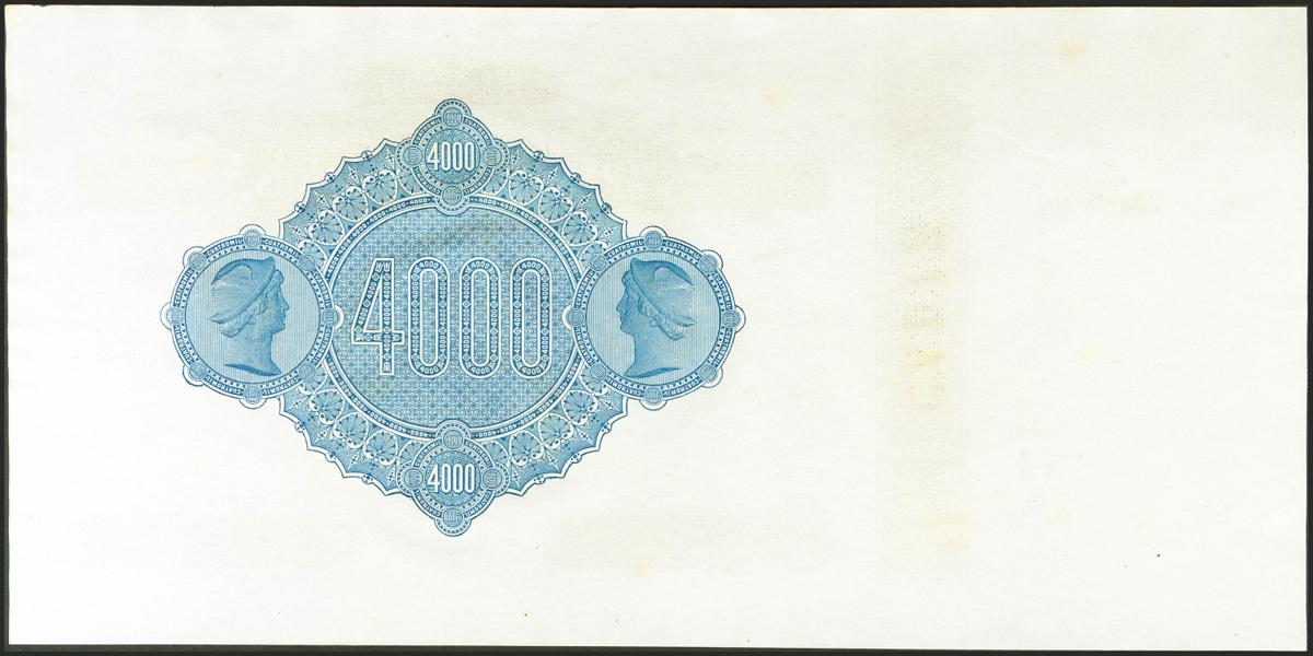 4000 Reales de Vellón. (187_ca). Aramburu Hermanos, Cádiz (matriz a la izquierda). Para entender mejor la contextualización de este billete recomendamos la obra "Obligaciones, vales y documentos puestos en circulación como papel moneda en España", de Don Ramón Cobo Huici. SC-