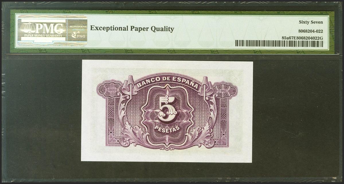 5 Pesetas. 1935. Certificado de Plata. Sin serie. (Edifil 2021: 363, Pick: 85a). Raro en esta excepcional calidad, apresto original. SC. Encapsulado PMG67EPQ