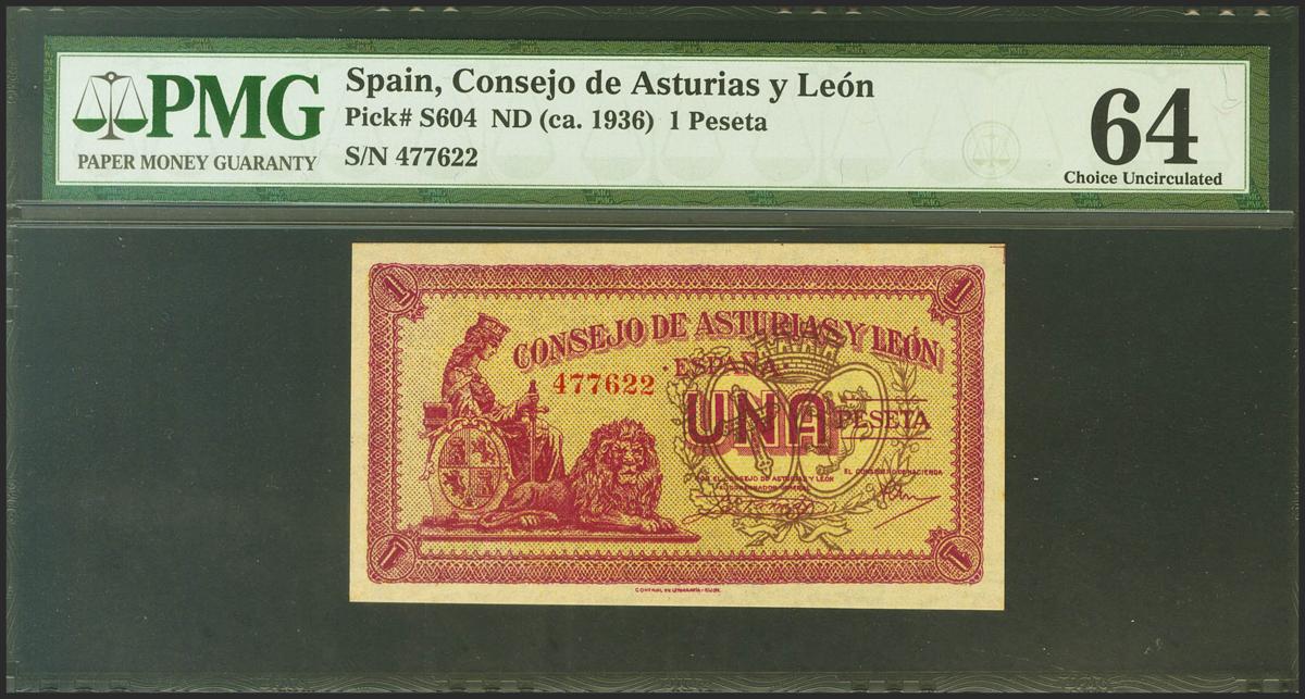 1 Peseta. 1937. Asturias y León. Sin serie. (Edifil 2021: 397. Pick: S604). SC. Encapsulado PMG64.