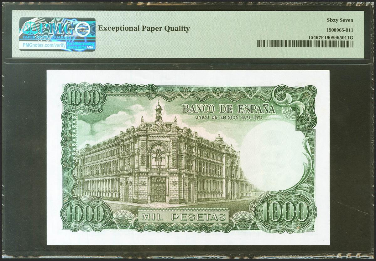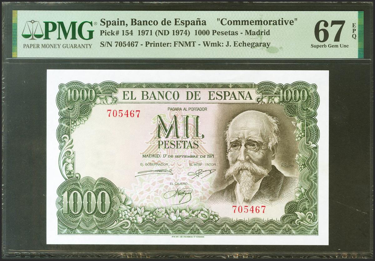 1000 Pesetas. 17 de Septiembre de 1971. Sin serie. (Edifil 2021: 474, Pick: 154). Inusual en esta calidad, apresto original. Encapsulado PMG67EPQ.
