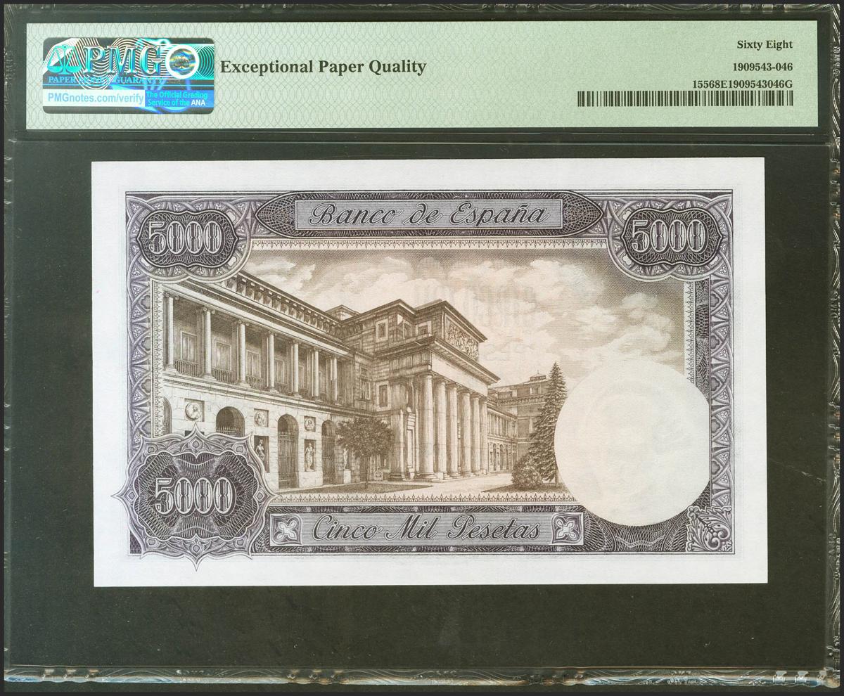 5000 Pesetas. 6 de Febrero de 1976. Sin serie. (Edifil 2021: 475, Pick: 155). Inusual en esta excepcional calidad. SC. Encapsulado PMG68EPQ.