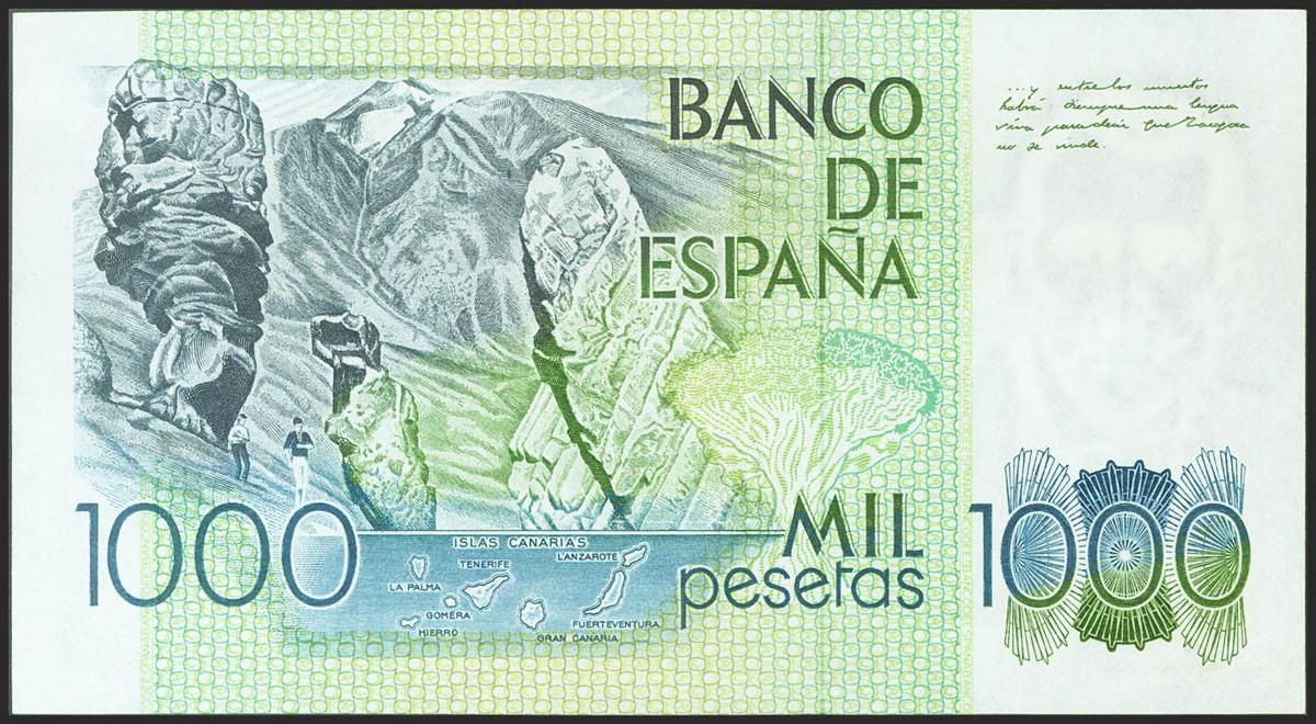 1000 Pesetas. 23 de Octubre de 1979. Error de impresión en el anverso. Serie D-A. (Edifil 2021: 477a). SC--.