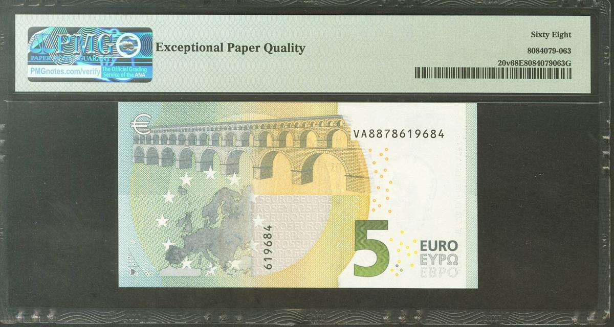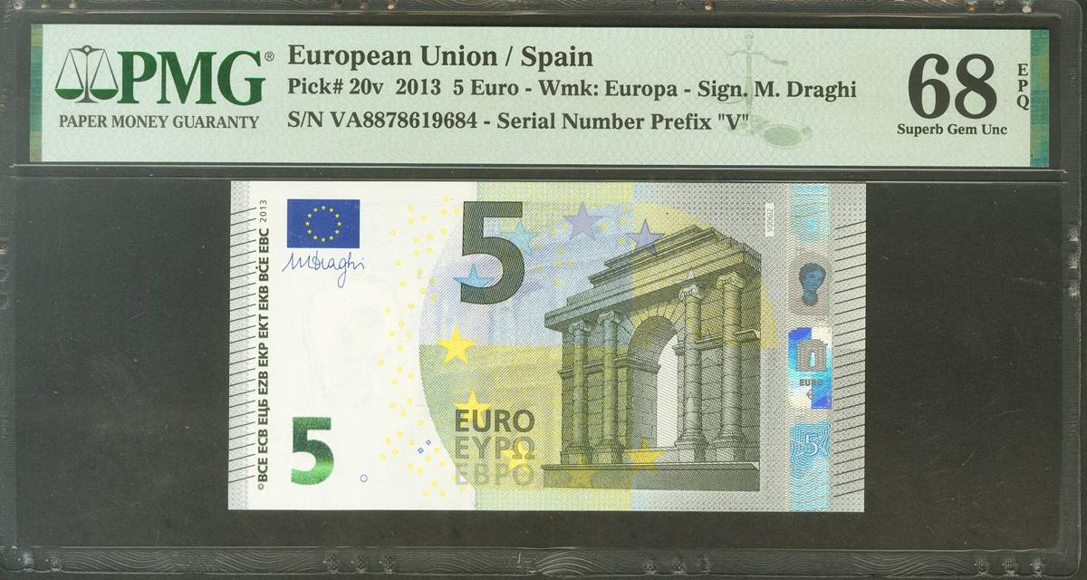 5 Euros. 2 de Mayo de 2013. Firma Draghi. Serie V (España). (Edifil 2021: 493, Pick: 20v). SC. Encapsulado PMG68EPQ.