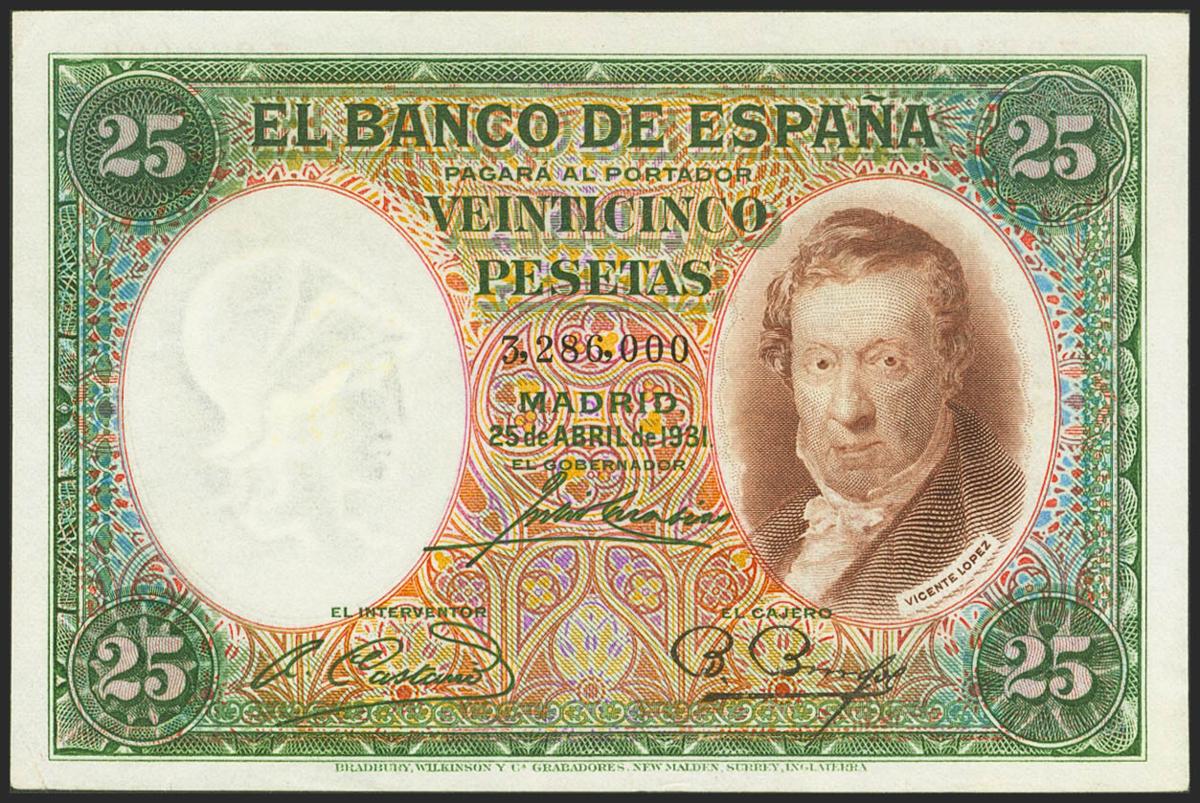 25 Pesetas. 25 de Abril de 1931. Sin serie. (Edifil 2021: 358). Conserva todo su apresto original. SC-.