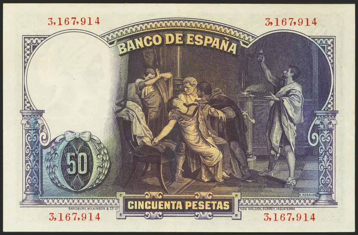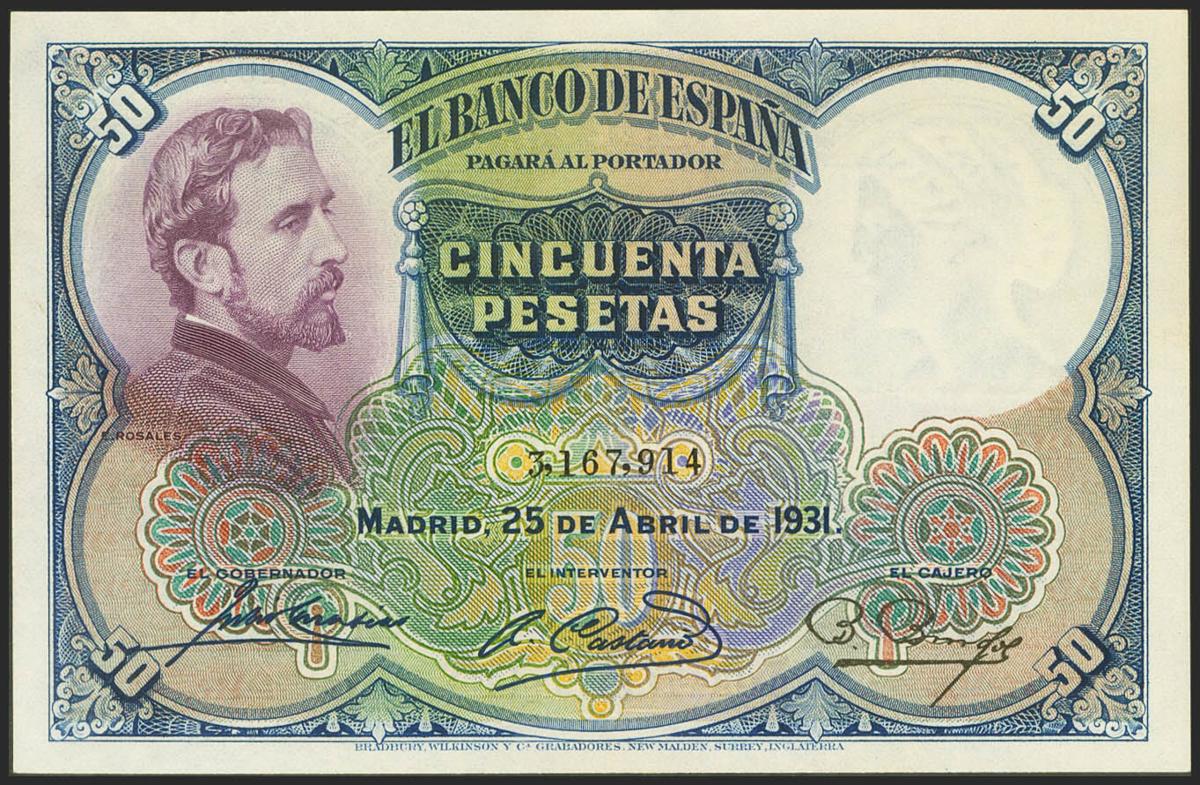 50 Pesetas. 25 de Abril de 1931. Sin serie. (Edifil 2021: 359). Conserva parte del apresto original. EBC.