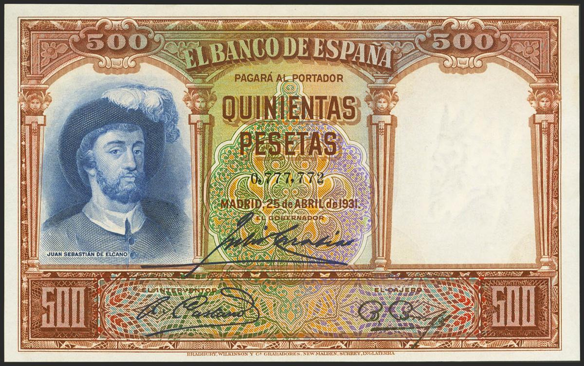 500 Pesetas. 25 de Abril de 1931. Sin serie. (Edifil 2021: 361). Apresto original. SC.
