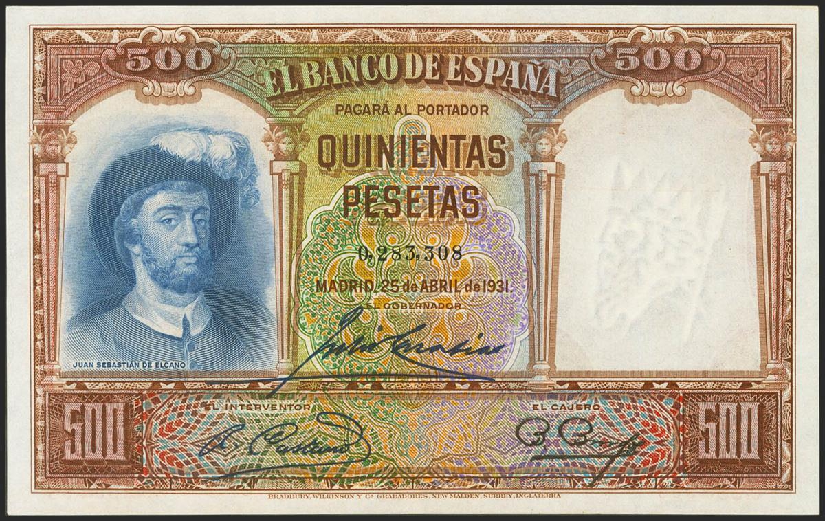 500 Pesetas. 25 de Abril de 1931. Sin serie. (Edifil 2021: 361). Conserva gran parte de su apresto original. EBC+.