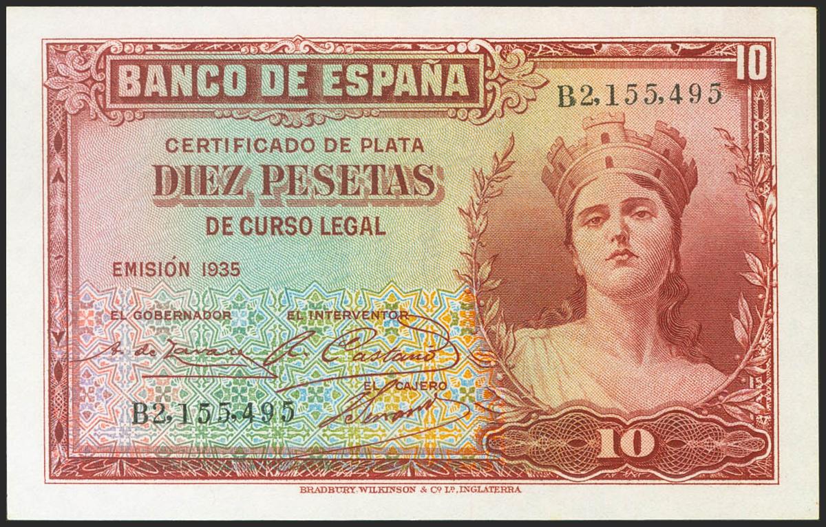 10 Pesetas. 1935. Certificado de Plata. Serie B. (Edifil 2021: 364a). Apresto original. SC.