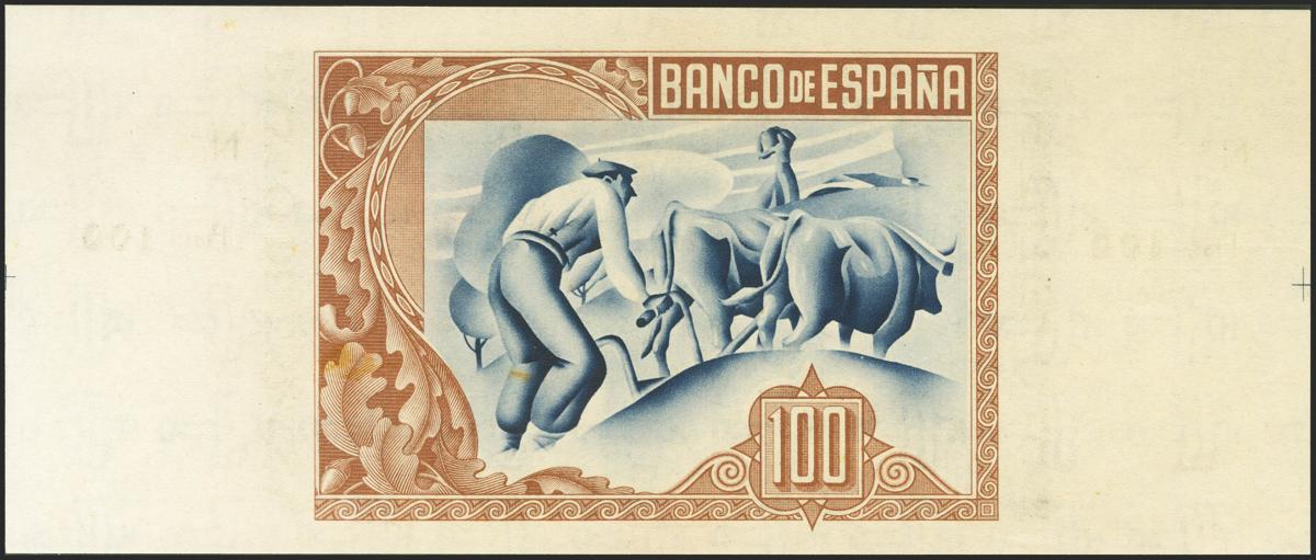100 Pesetas. 1 de Enero de 1937. Sucursal de Bilbao, antefirma Banco de Bilbao. Sin serie y sin numeración, con ambas matrices. (Edifil 2017: 390a). Apresto original. SC-.