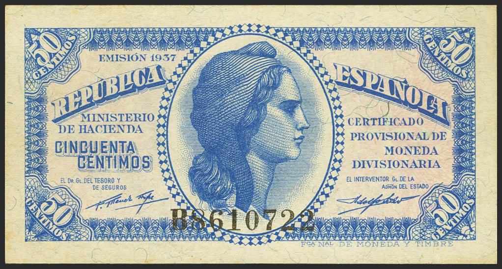 50 Céntimos. 1937. Serie B. (Edifil 2021: 391). Apresto original. SC-.