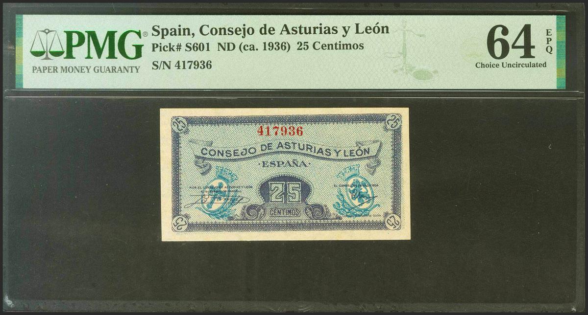 25 Céntimos. 1937. Asturias y León. (Edifil 2021: 394, Pick: S601). Apresto original. SC. Encapsulado PMG64EPQ.