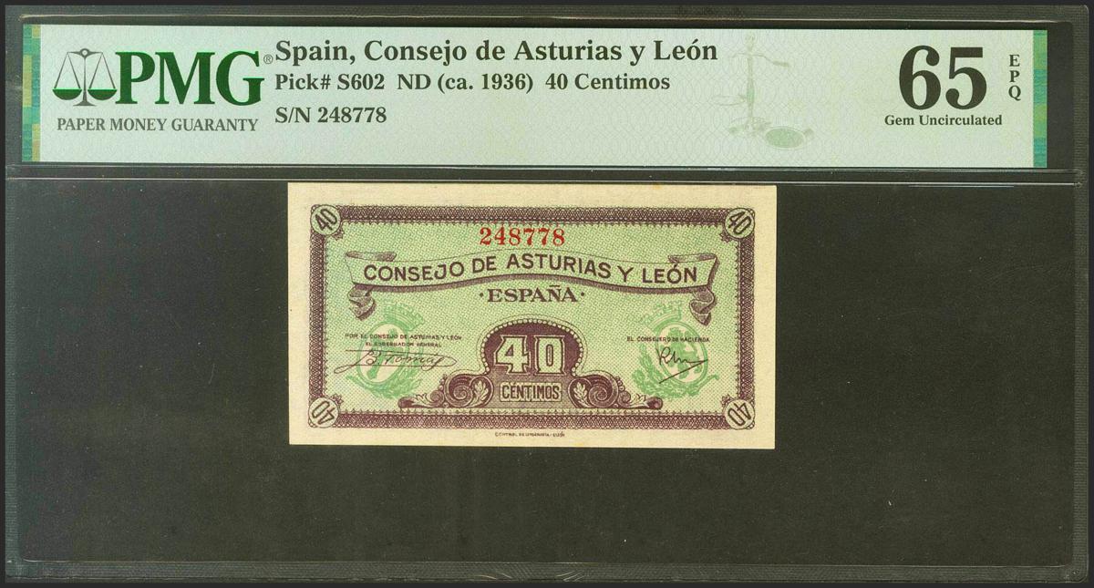 40 Céntimos. 1937. Asturias y León. Sin serie. (Edifil 2021: 395, Pick: S602). Apresto original. SC. Encapsulado PMG65EPQ.
