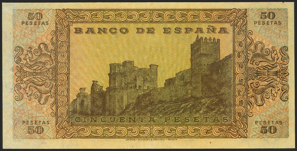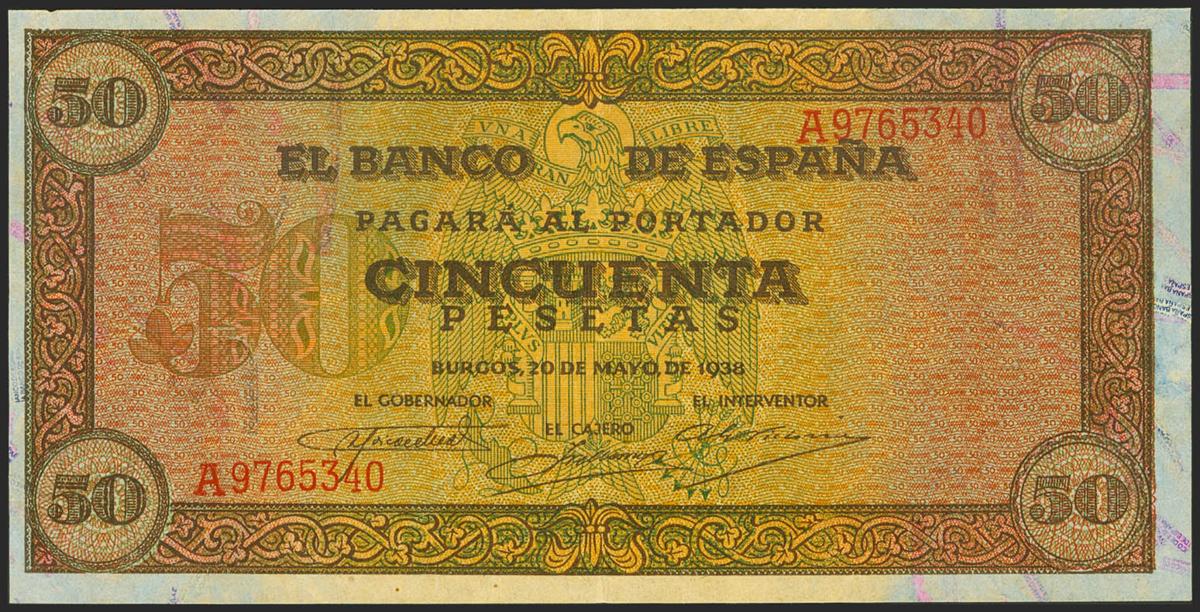 50 Pesetas. 20 de Mayo de 1938. Serie A. (Edifil 2021: 431). Conserva gran parte del apresto original. EBC+.