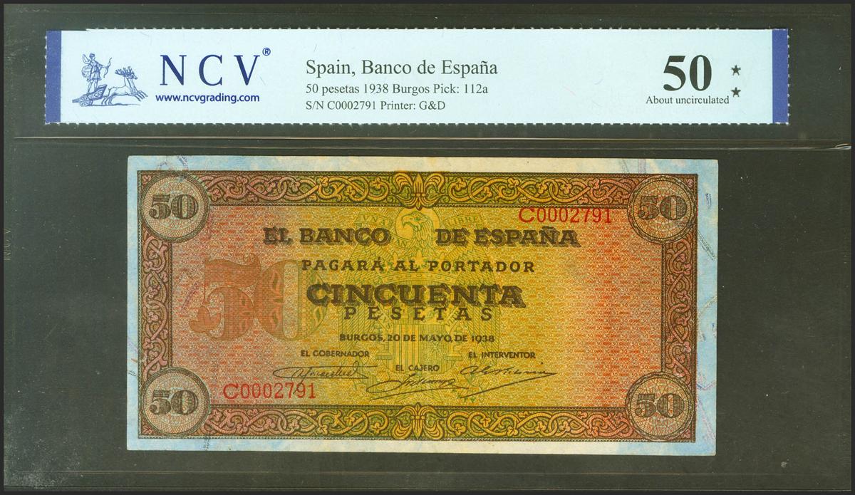 50 Pesetas. 20 de Mayo de 1938. Serie C. (Edifil 2021: 431a, Pick: 112a). EBC. Encapsulado NCV50.