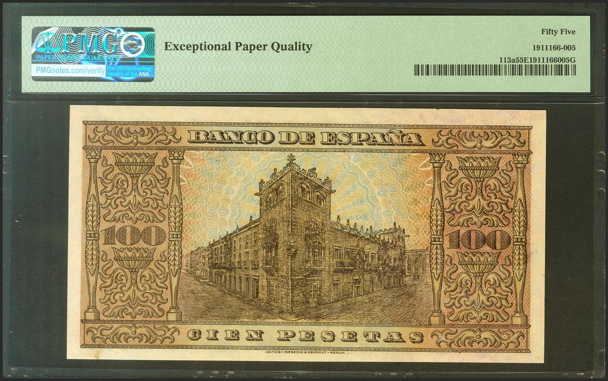 100 Pesetas. 20 de Mayo de 1938. Serie A. (Edifil 2021: 432). Apresto original. EBC+. Encapsulado PMG55EPQ.