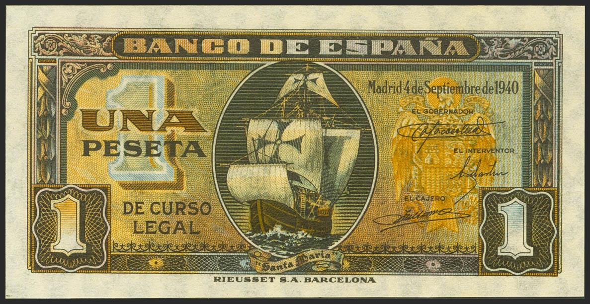 1 Peseta. 4 de Septiembre de 1940. Serie E. (Edifil 2021: 442a). Apresto original. SC--.