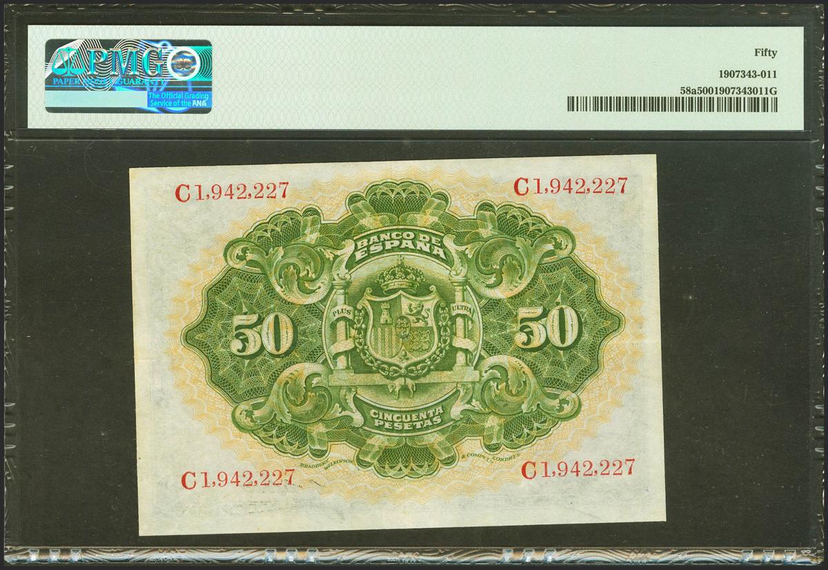 50 Pesetas. 24 de Septiembre de 1906. Serie C, última serie emitida. (Edifil 2021: 315a, Pick: 58a). EBC. Encapsulado PMG50.