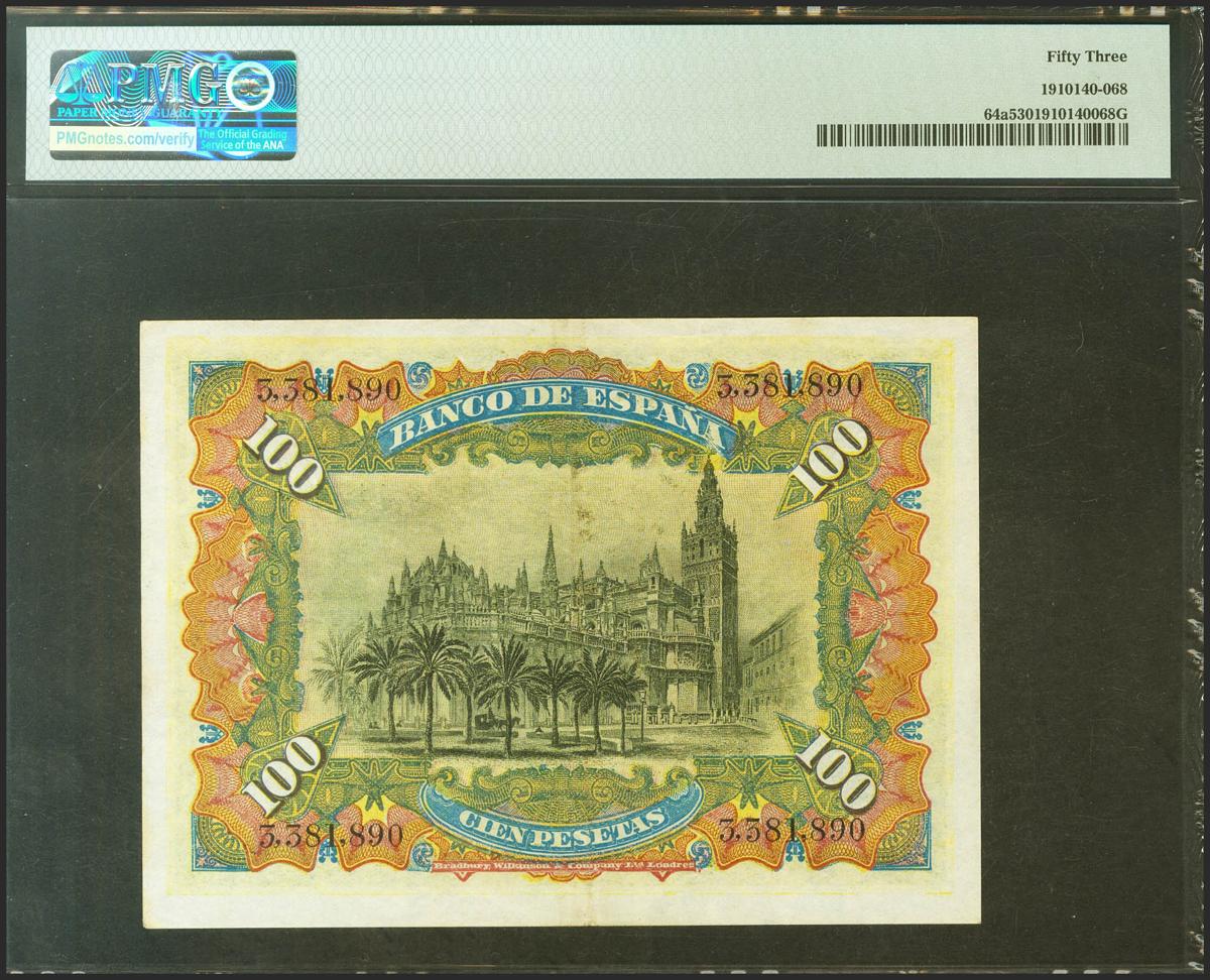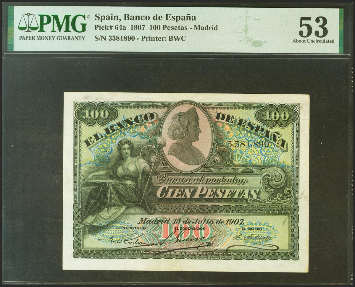 100 Pesetas. 15 de Julio de 1907. Sin serie. (Edifil 2021: 320, Pick: 64a). EBC+. Encapsulado PMG53.