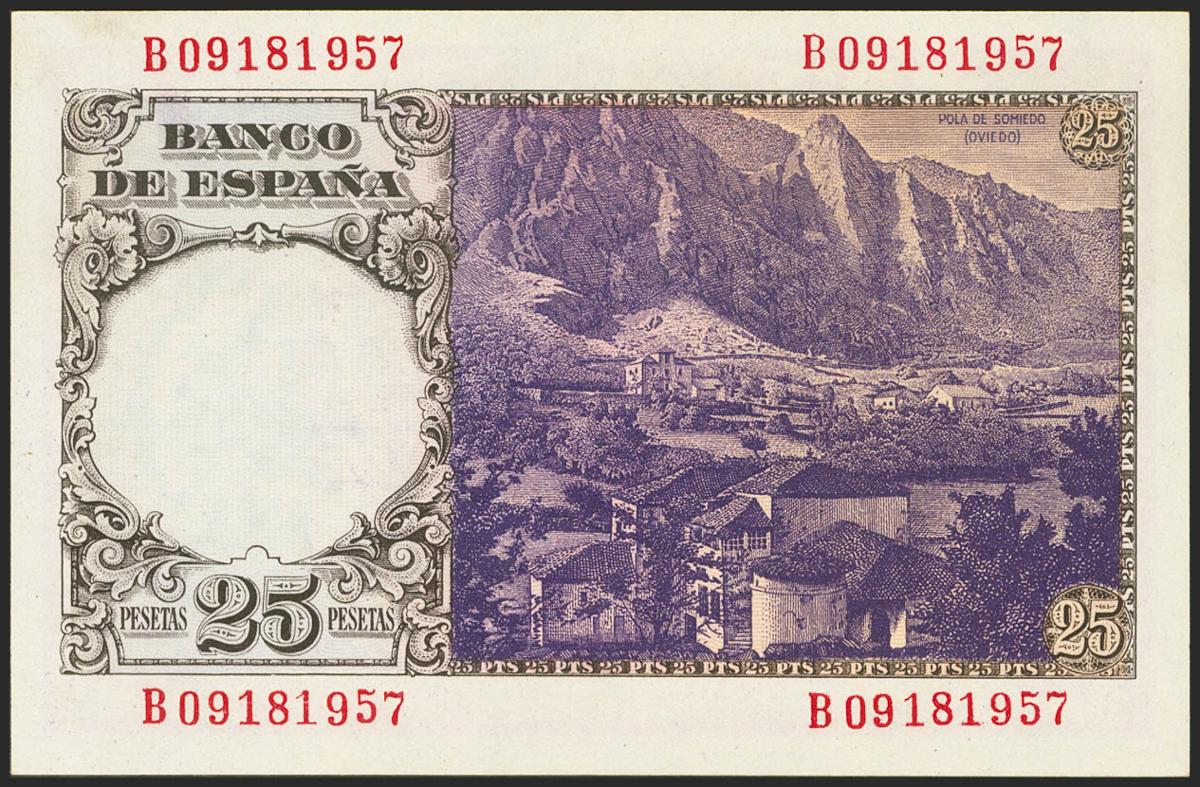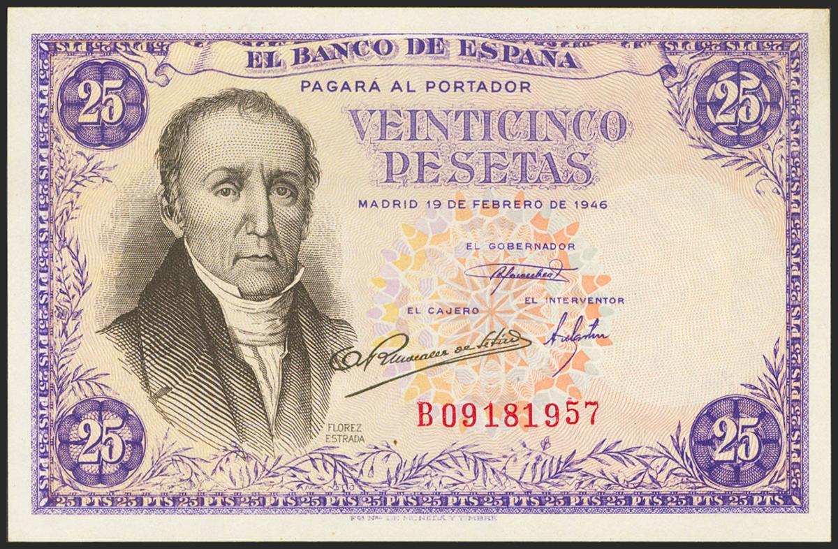 25 Pesetas. 19 de Febrero de 1946. Serie B. (Edifil 2021: 450a). Apresto original. SC.