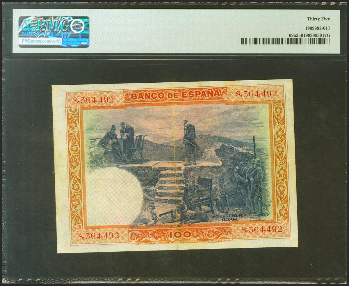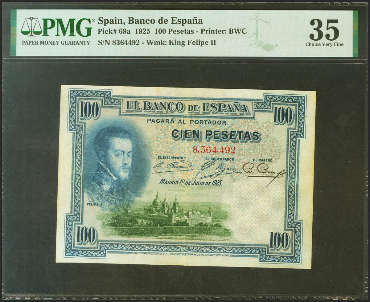 100 Pesetas. 1 de Julio de 1925. Sin serie. (Edifil 2021: 323, Pick: 69a). Inusual. EBC-. Encapsulado PMG35.