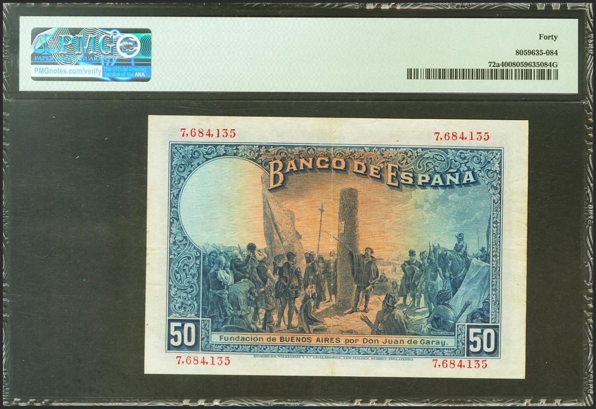 50 Pesetas. 17 de Mayo de 1927. Sin serie. (Edifil 2021: 326, Pick: 72a). EBC. Encapsulado PMG40.