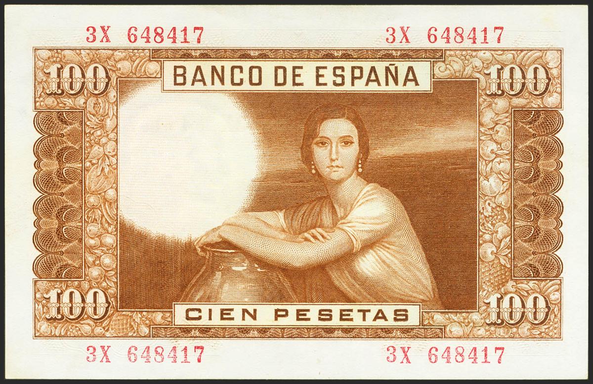 100 Pesetas. 7 de Abril de 1953. Serie 3X, última serie emitida. (Edifil 2021: 464c). Conserva todo su apresto original. EBC+++.
